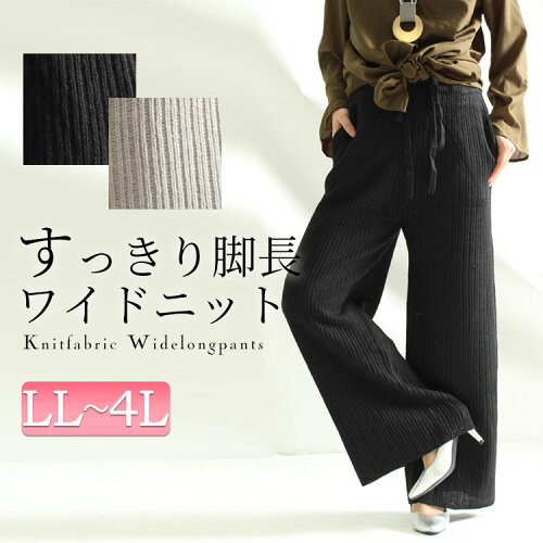 美脚が叶う♪ニットワイドパンツ 大きいサイズ レディース ボトムス パンツ ロング ワイドパンツ ニットパンツ ロング丈パンツ フレアパンツ ロング丈 ニット ウエストゴム 無地 シンプル LL 2L 3L 4L XL XXL LLサイズ 13号 15号 17号 black 黒 ブラック ライトグレー