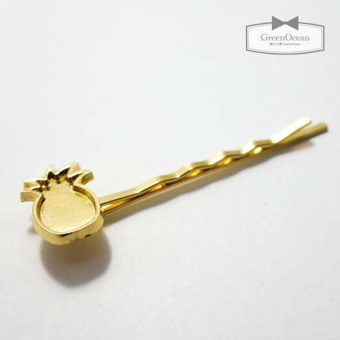 【ヘアーアクセサリー】皿付ヘアピン パイナップル 《きれいめゴールド》【果物 フルーツ ストレートピン ビーズアンドパーツ アクセサリーパーツ】