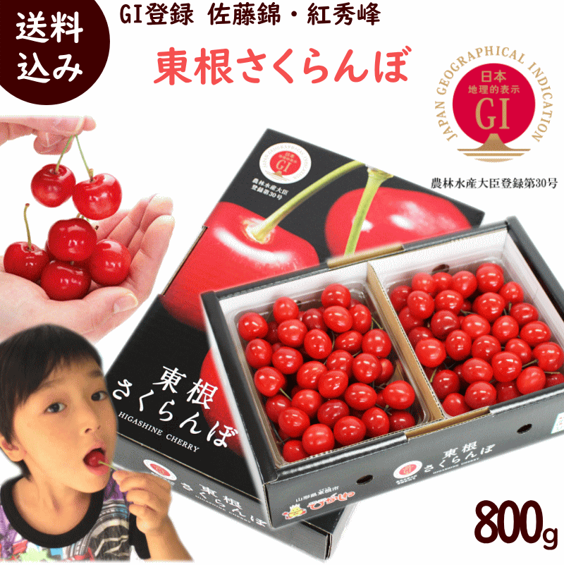 商品名 配送温度帯/配送業者 GI登録 山形産 佐藤錦または紅秀峰 東根さくらんぼ 800g (400g×2P) 秀品 L・2Lサイズ バラ詰 ヤマト運輸/冷蔵便/送料込 ※沖縄へのお届けは送料が別途880円かかります。